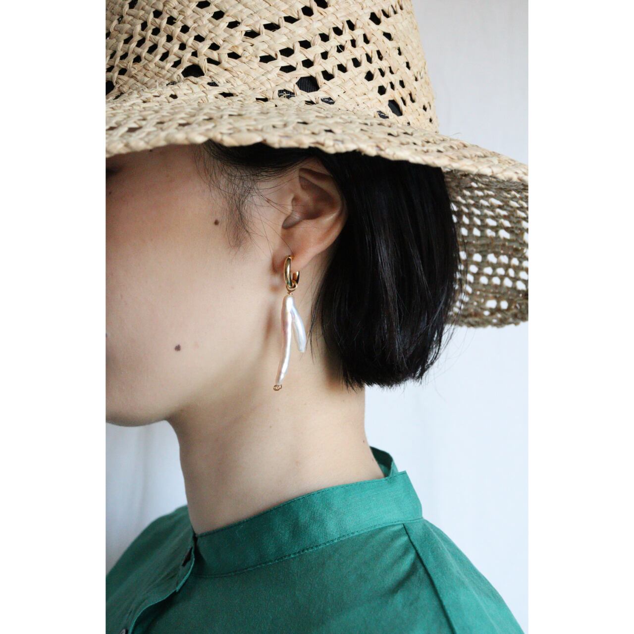 2つに裂けたような遊び心のあるフォルムのバロックパールを使用したピアス。
