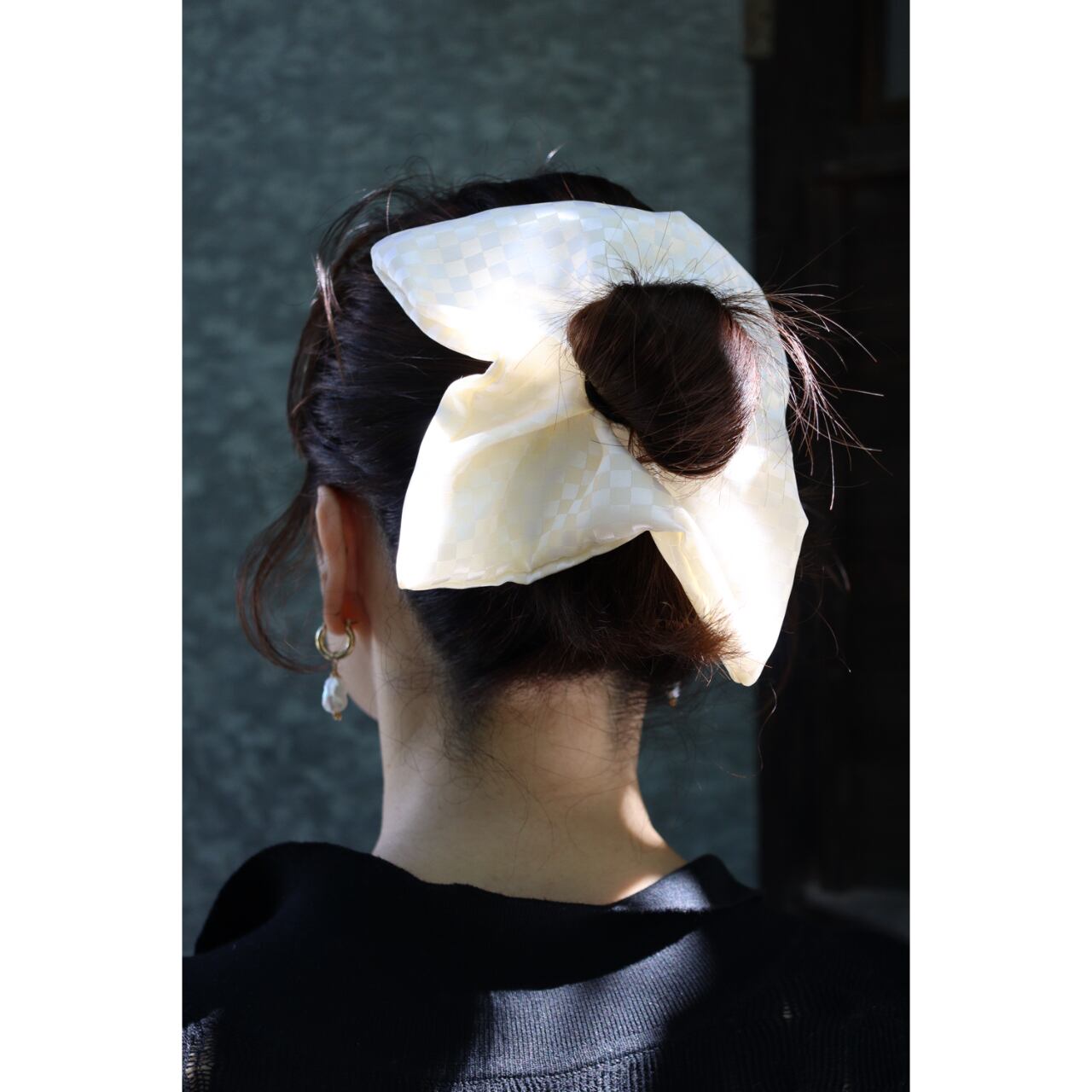 スクエアタイプなので髪につけるとギャザーが寄り、立体的なリボンのようなフォルムに。
